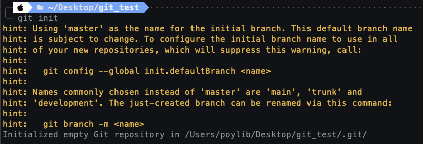 만약 git init을 사용했을 때 다음과 같은 문구들이 뜬다면