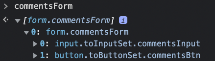 const [...commentsForm] = document.getElementsByClassName("commentsForm"); //[0:input 1:button]