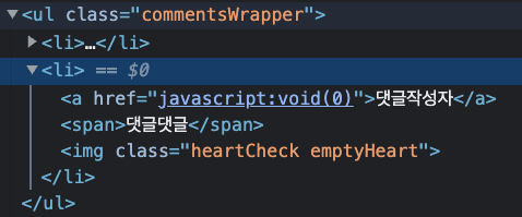 위에서부터 순서대로 beforeend는 새 댓글(<li>)이 원 댓글 아래로 생기게 하고, <li> 안에서 아이디, 댓글 내용, 댓글 좋아요 버튼 순으로 오게 했다.